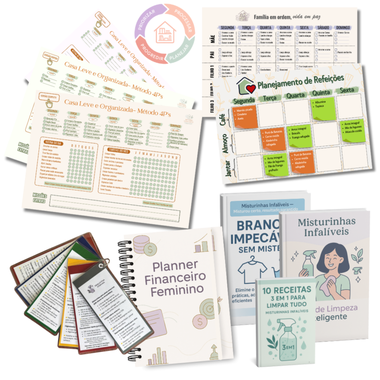 Já tentou seguir planners, aplicativos ou listas prontas, mas não conseguiu manter nada por mais de alguns dias? Gostaria de ver sua casa em ordem rapidamente — leve, organizada e com cara de “cuidada” — sem esforço e sem perder horas do seu dia?